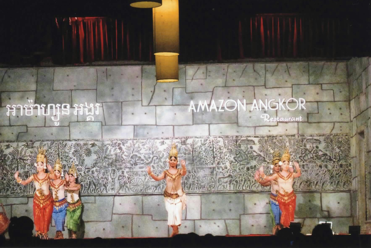 かなり広い会場でアプサラダンスショーを見ながらビュッフェディナーが楽しめます。ツアーで利用しましたが、広い会場も観光客で埋まっており、ビュッフェでも長い列ができているので、ゆっくりと食事とダンスを楽しむのが難しいかもしれません。ビュッフェは種類もけっこうあって普通に美味しかったのですが、まわりの日本人に人気だったのは、たこ焼きのようなもの。行ったら、探してみて下さい。ダンスもステキでした!