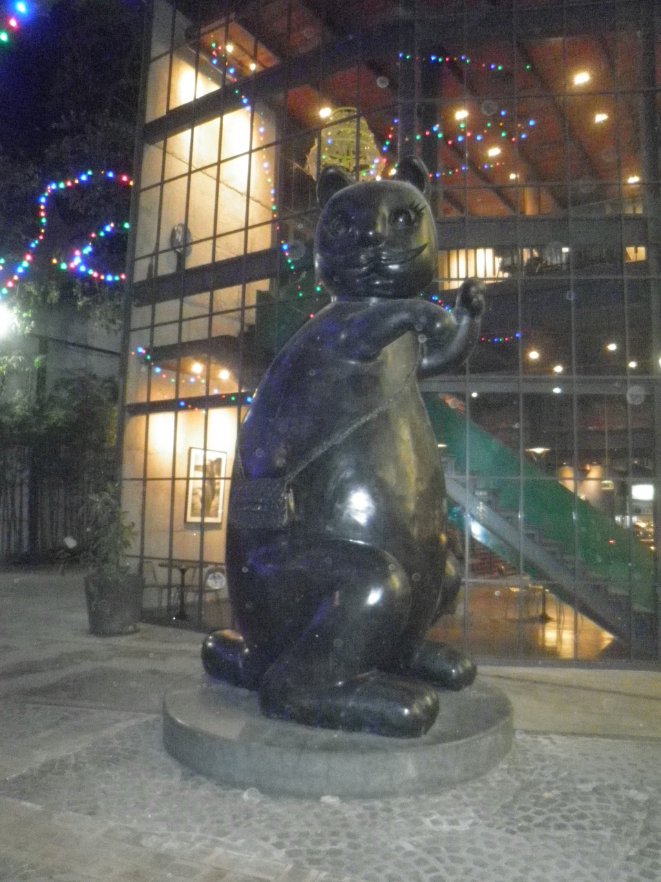 チェンマイのニマンヘミン通りの北端、巨大なショッピングモールのマヤの向かい側にあるThink Parkはあります。 レストランやカフェなどが並ぶエリアだけど、大きな樹がはえていたり、面白いオブジェがあったりする楽しいスペースです。若者むけのせいか、飲食代は高くないと思います。 夕方から夜にかけてにぎわっていて、マヤのイルミネーションなどがきれいです。