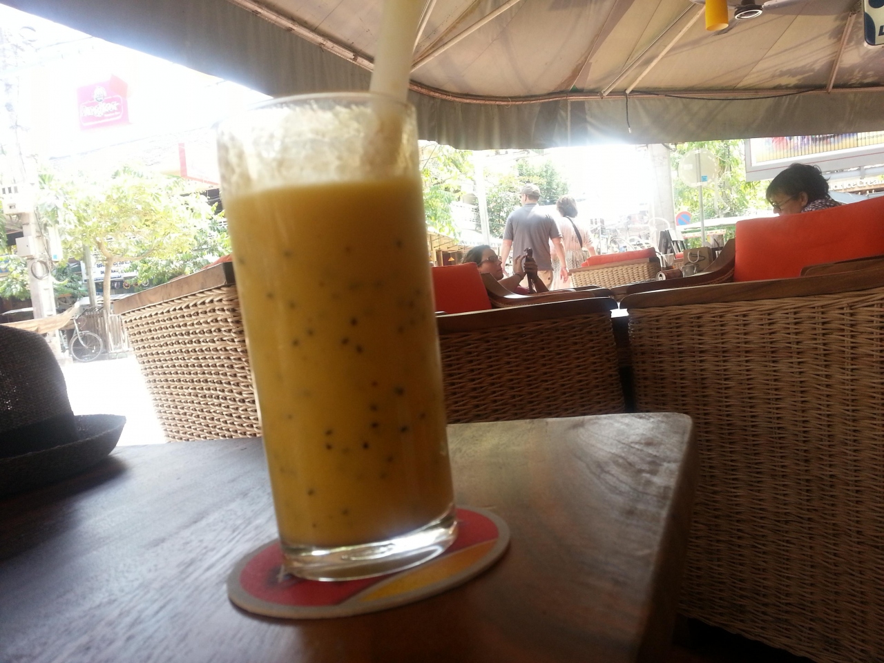 フルーツ・シェイクが2ドル、ミックス・フルーツ・シェイクが2.25ドル。後者を頼んだんですが、おいしかったです。夜の雰囲気もいいですが、オールド・マーケットでのお買い物ついでにカフェとして利用するのもオススメです。