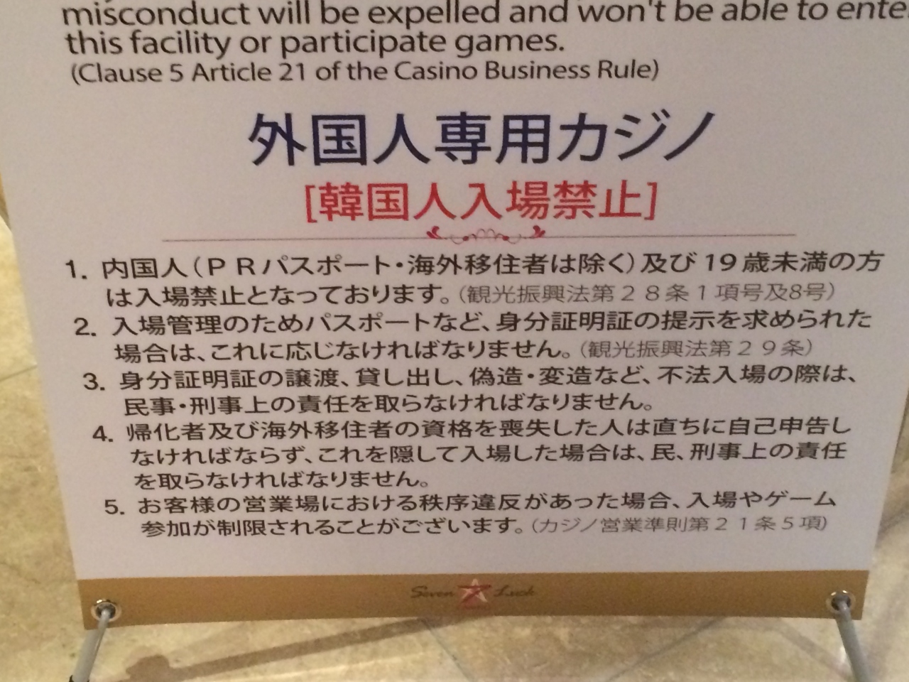 ロッテホテル釜山の2階にあります。ラスベガス、マカオ等のカジノと比較すると小さめです。今回100000wのフリーチップがもらえたので行きました。