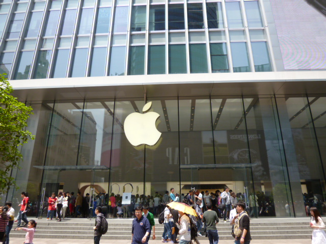 南京東路の駅を降りてすぐの場所にあるアップルの大型店です。上海の人は相当アップルが好きなようで、日本円で10万円を超える値段であってもIphone6を買い求める人で店内はごった返しています。一方、中国ブランドの廉価な「Xiaomi小米」「Huawei華為」なども売り上げを伸ばしていると聞きますので、嗜好の二極化が進んでいるようです。韓国Samusungが不調なのも、このあたりに原因があるのでしょうね。