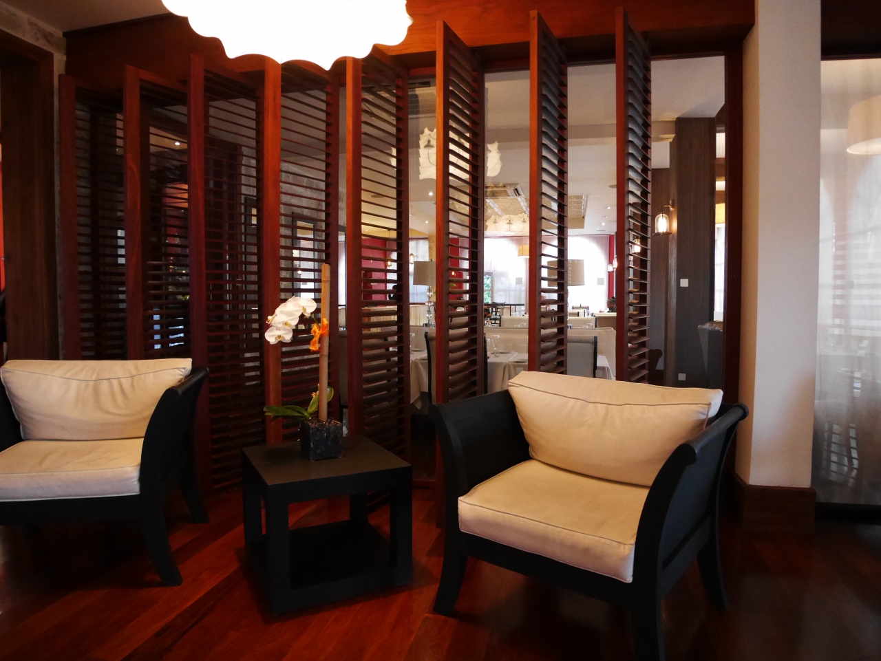 このスパニッシュコートホテルは、おしゃれな女性好みのホテルですので、このお店も赤と黒系の内装で、お客も地元のお金持ち風の方が多い気がします。