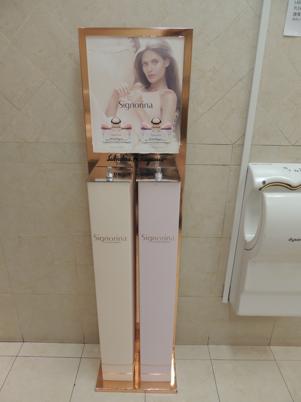 JCBプラザのすぐ近くだし、場所がわかりやすく、便利な所にあり、お土産などを物色しようと立ち寄りました。何年か前に行った時と比べ、店内はあまり変わり映えがなかったのですが、トイレを拝借したら、香水の見本がおいてありました。