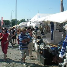 スオメリンナ島に行くフェリーの乗り場にあります。たくさんのお店があり、お土産や野菜、雑貨などのほかに食事のできるお店が出ています。特に、市内で食べると高くつくご飯も、ここでは手軽な値段で食べることができます。歩いていてとても楽しいです。