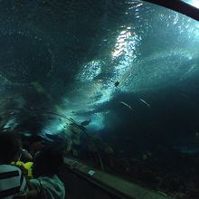 水槽の数や魚の種類は日本の水族館ほどではなかったです。トンネル状の水槽の下は動く歩道になっていて順番待ちの人で混んでいました。距離そのものは長くないのですぐに終点になりました。