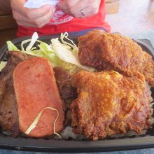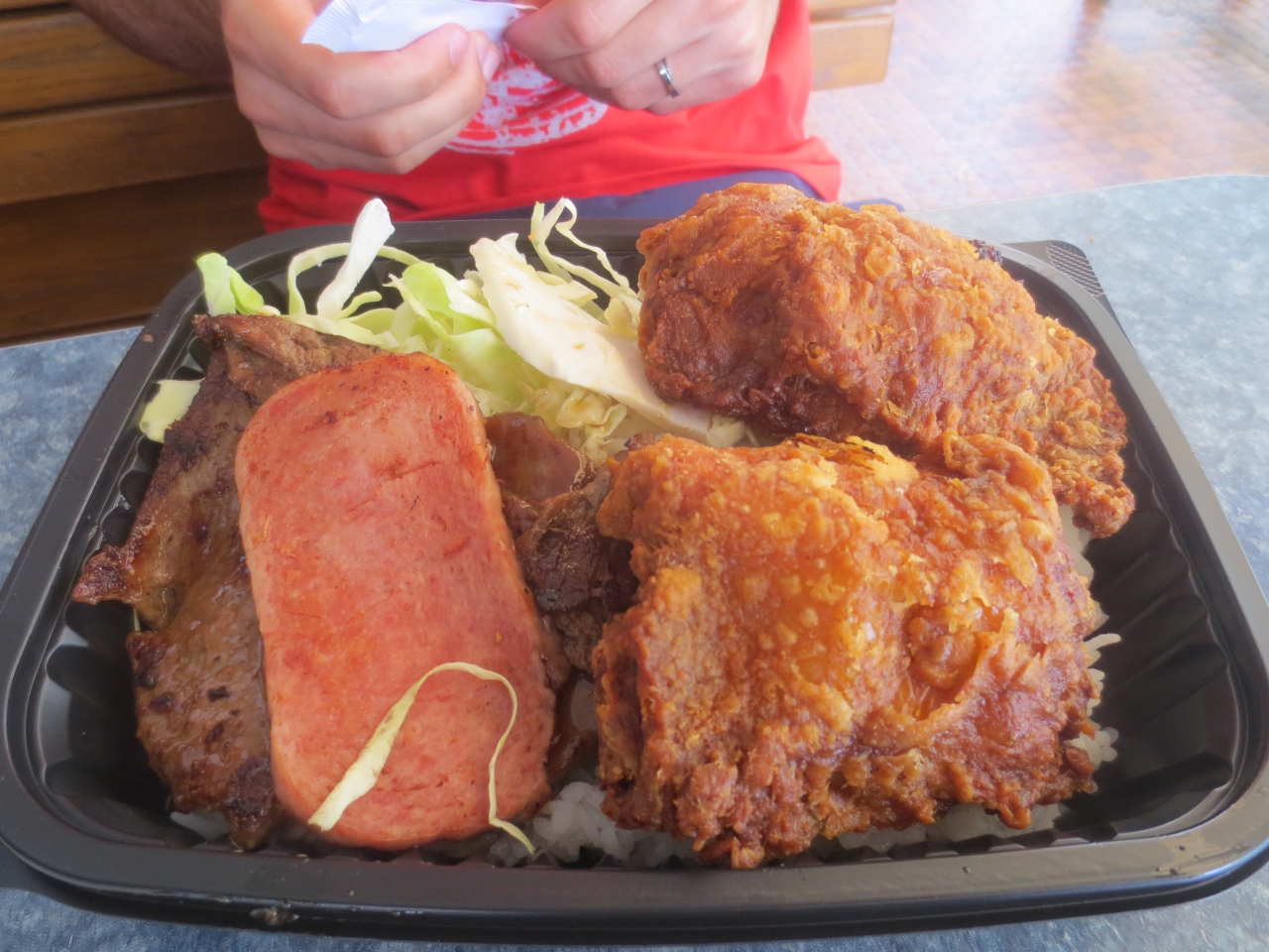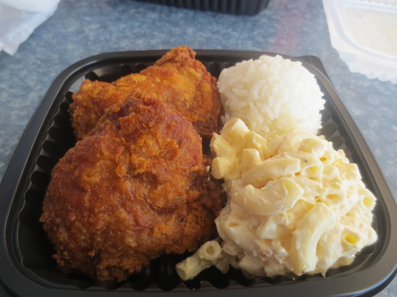 地元の人達御用達のレストランということで、ガイドさんに連れられて行って来ました。「フライドチキン食べます」とは言いましたが、まさかの超・ドデカサイズ・・・(泣)。ハワイ初日の胃袋にはちょっとヘビーでしたが、おいしいし、もったいないし、完食。だから太るんですよね~~~