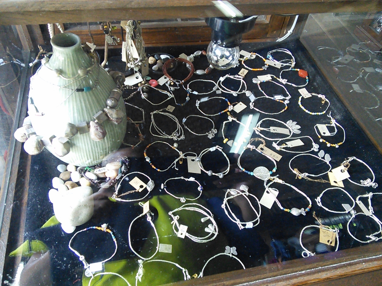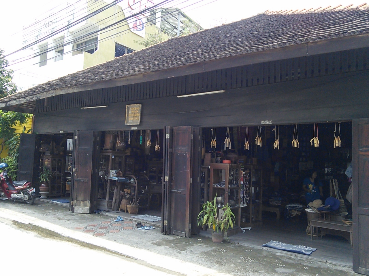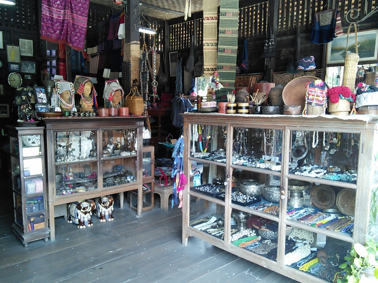 山岳少数民族に関連した雑貨やアクセサリーを売っているショップです。店内は商品がきれいにディスプレイされちょっとおしゃれな感じです。アカ族の頭飾りや腕輪、布地、古民具などがあります。お土産になりそうなものはピアス(150B~)、ネックレス(450B~)、指輪、トートバッグ(1800B~)、刺繍入りバッグ(2200B~)など。見るだけでも結構楽しめます。