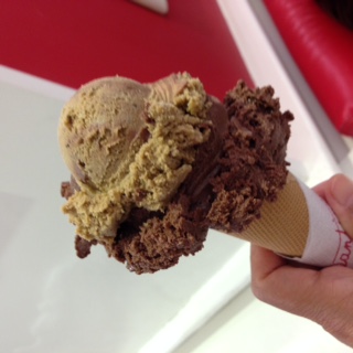 華奢なコーン(これがサクサクでとても美味しい)に、「これでもかっ!これでもかっ!」と言う感じでアイスクリームを乗せてくれます。写真を撮っている間にポタっと落ちないかハラハラしながら写しました。写した後はなりふり構わずかぶりつきました。ん~毎日食べたくなります^^