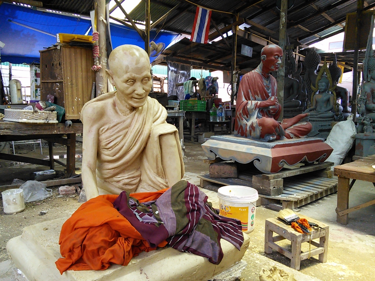 中に入って行くとクラシックカーが展示?されておりそこにいたおばさん(従業員?)に「奥だよ」の合図されました。尋ねると無料で見学できるようです。あちこちに製造、修理途中の大小様々な仏像が置かれています。小さな工房ですがなかなかの眺めです。皆さん作業中なので特に説明を受けたりということはありませんでしたが見て回るだけでも十分楽しめました。所内には仏像ショップもあります。