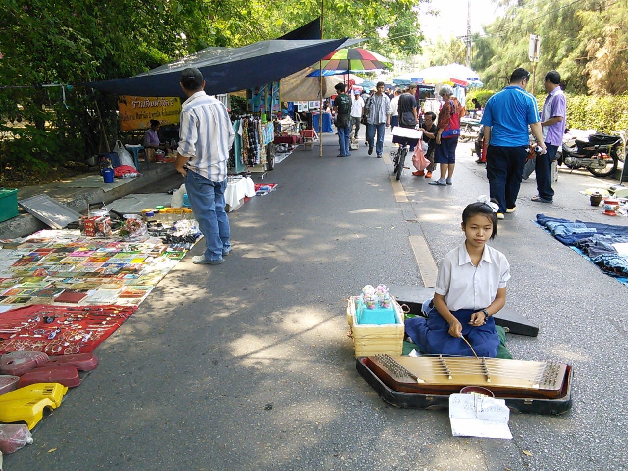 毎週土日の7:00頃~15:00頃に開かれる大きなフリーマーケットです。場所はアーケードバスターミナル2に向かうケーオ・ナラワート通り沿いにあるプリンス・ロイヤル・ガレッジとパヤップ・ユニバーシティの間にあるバムルン・ラジュ通りです。正しい地図は写真参照。