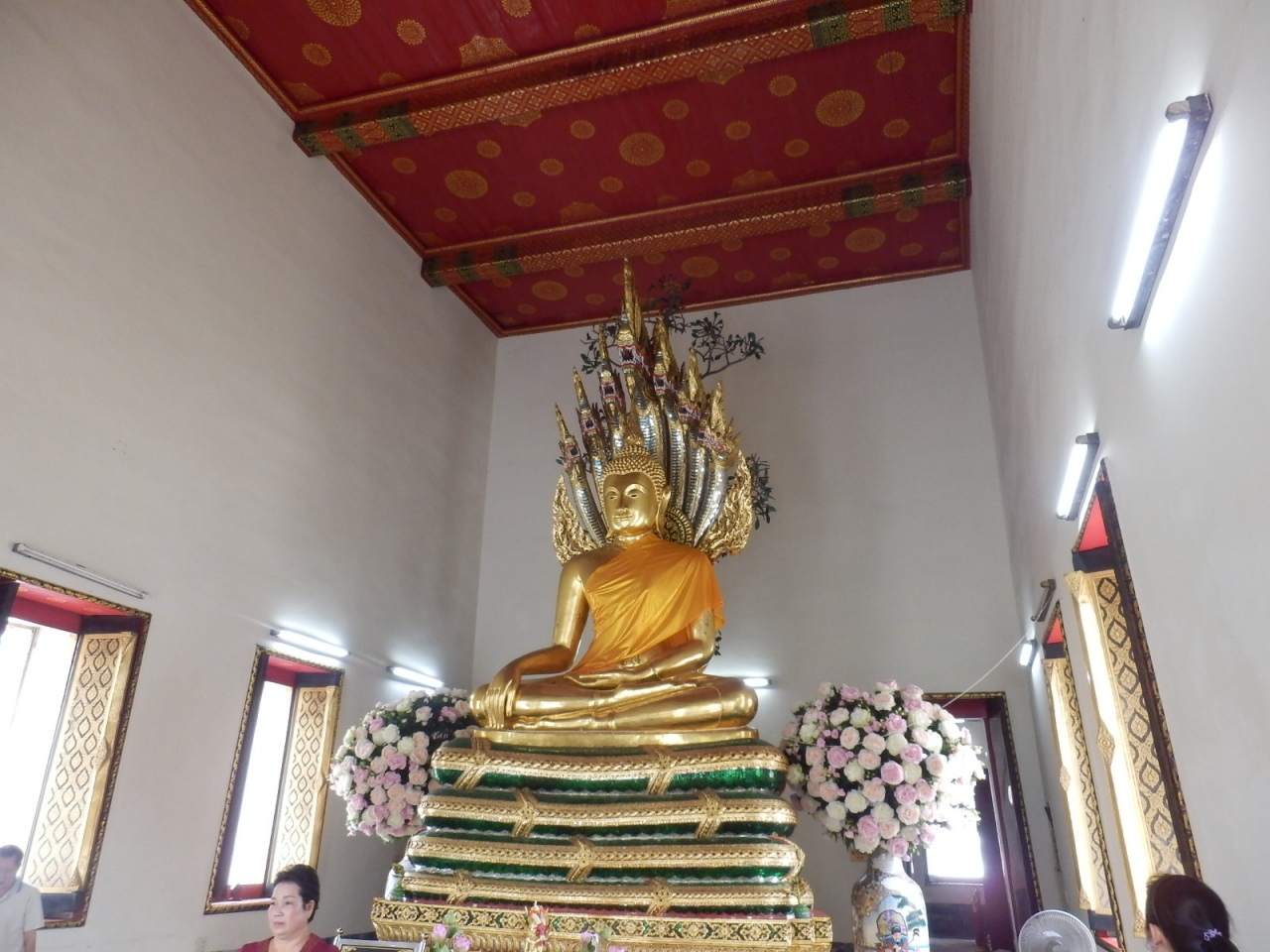 以前に一度ツアーで訪れたことがあったのですが、今回個人で訪れてみて驚いたことはこのお寺の大きさ。ツアーで訪れたときは黄金の涅槃仏の印象しか残っていなかったのですが、 涅槃仏を見た後に境内をひととおり回ったら、いろんなお堂や仏塔があって、涅槃仏しか見学しないのはもったいないと思いました。お堂の中を覗くと、きらびやかな内装だったり、黄金の仏像が置かれていたりして、見どころ満載のお寺でした。