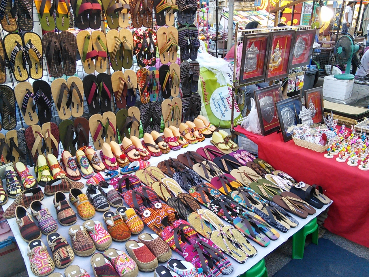 観光客向けの土産物屋や食べ物屋がほとんどです。店の数は驚くほど多く1Kmほどの通りにずらっと並んでいます。本格的に始まるのは18:00頃から。雰囲気を味わいたいなら暗くなってからの方がいいですが人手も増えるのでじっくりとお土産を買いたいなら少し早めに行ったほうがいいと思います。16:00頃でも店は出ています。