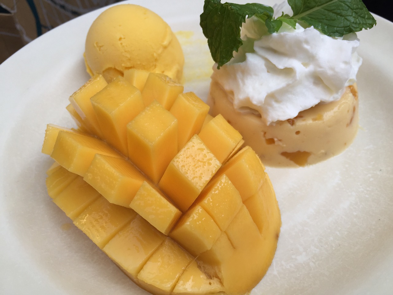 夕方4時頃に行きましたが、行列ができていて少し並びました。食べたのはマンゴタンゴ。フレッシュマンゴー、マンゴーアイス、マンゴープリンがプレートに盛り合わせてあります。マンゴー好きにはたまらない盛り合わせです。エアコンが効いている席は満席だったので、外にあるテーブル席で食べました。美味しかったので、また行きたいです。
