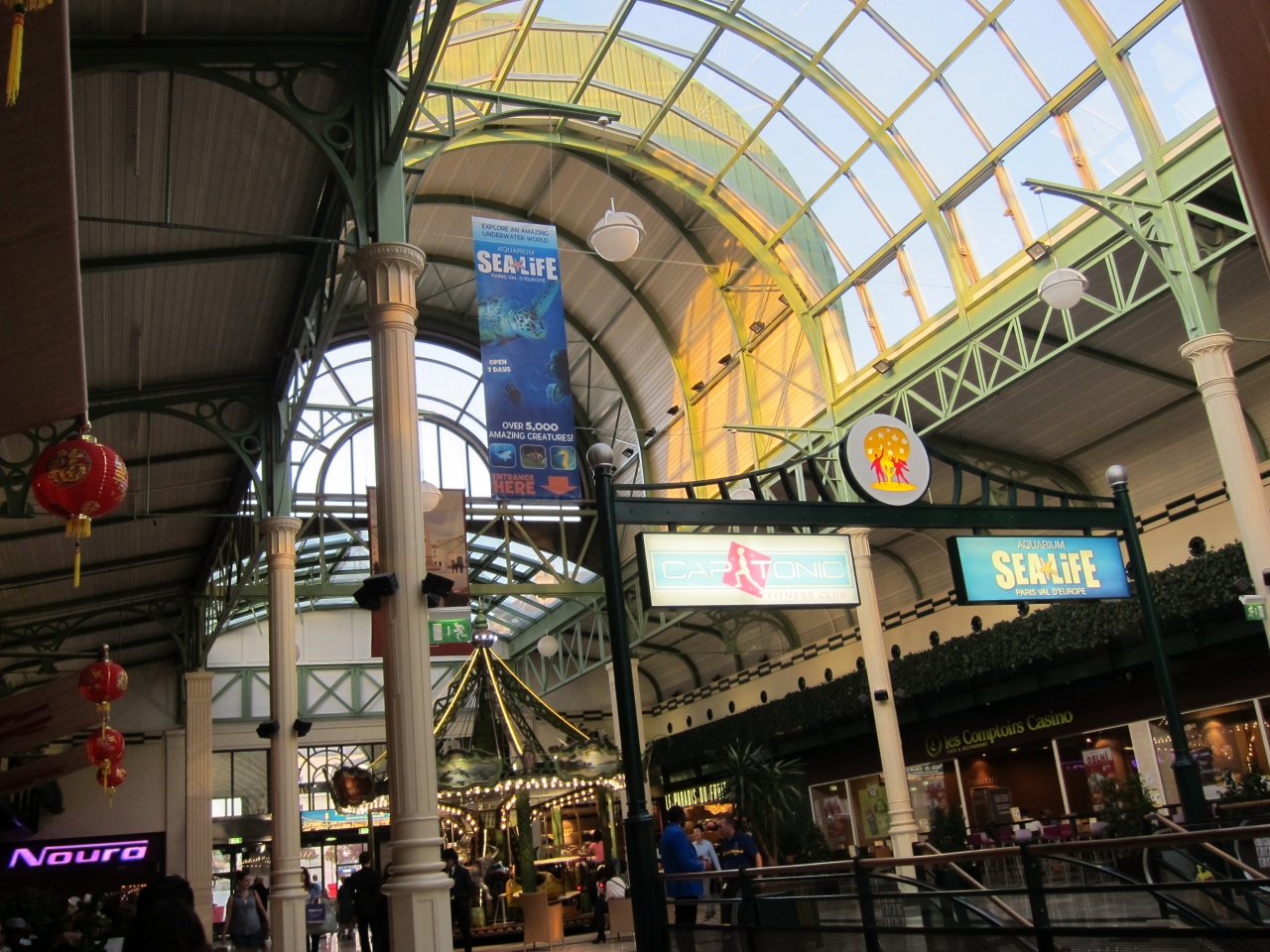 駅の方の入り口で二手に分かれますが、左手が子供服のお店が並んでて、右側は婦人服、靴などのお店が並んでいます。途中、右手にアウトレットに行く出口もありますし、駅の反対側に出ると素敵なレストラン、チョコレートのお店が並んでいて、雰囲気も素敵です。