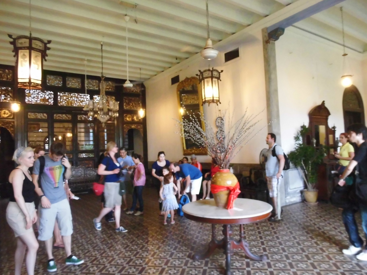 19世紀に活躍したチョンファッツィが住んでいた建物ですが、別名はブルーマンションといいます。その名の通り青色の壁が特徴的な建築物ですが、内装もマレー文化を象徴する鮮やかな色彩や家具などに目を惹かれます。一方で、漢字の掛け軸や一輪の花が供えられている書斎などを見ると昔の中国の家庭を感じることができ、また別の場所に目をやるとステンドグラスが飾られていたりと、様々な文化が混ざった「プラカナン文化」の一端を見ることが出来ます。