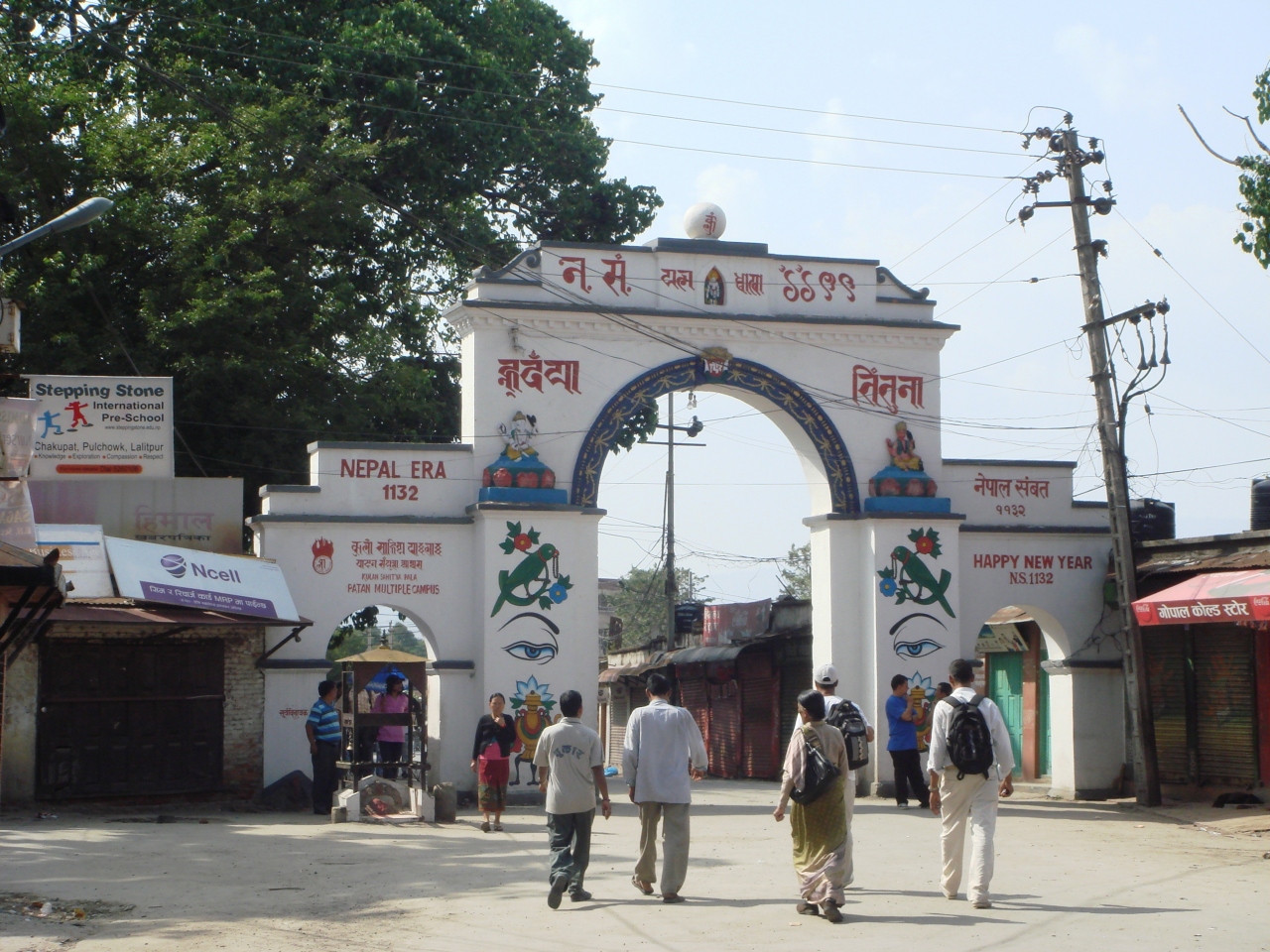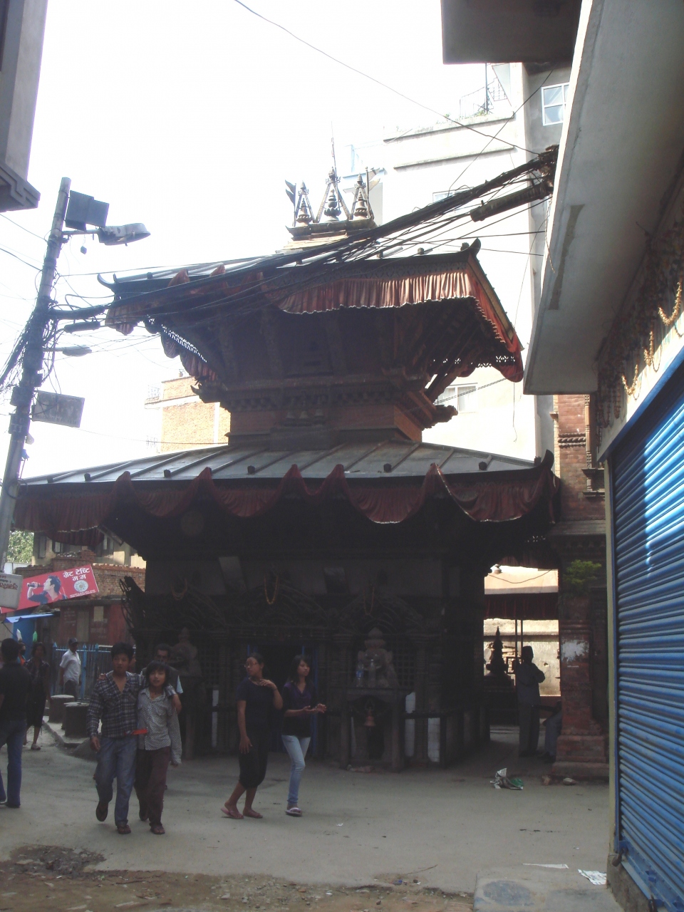 カトマンズからバスで来た際に通過する、パタンへの出入り口。史跡でも何でもない普通のゲートだが、これが見えたらちゃんとパタンに来たってことになる。ここで入域料を払う必要はない。入域料が必要なのは、パタンのダルバール広場。人の流れに沿ってゲートの先を進むと、左側にガネーシャ寺院がある。