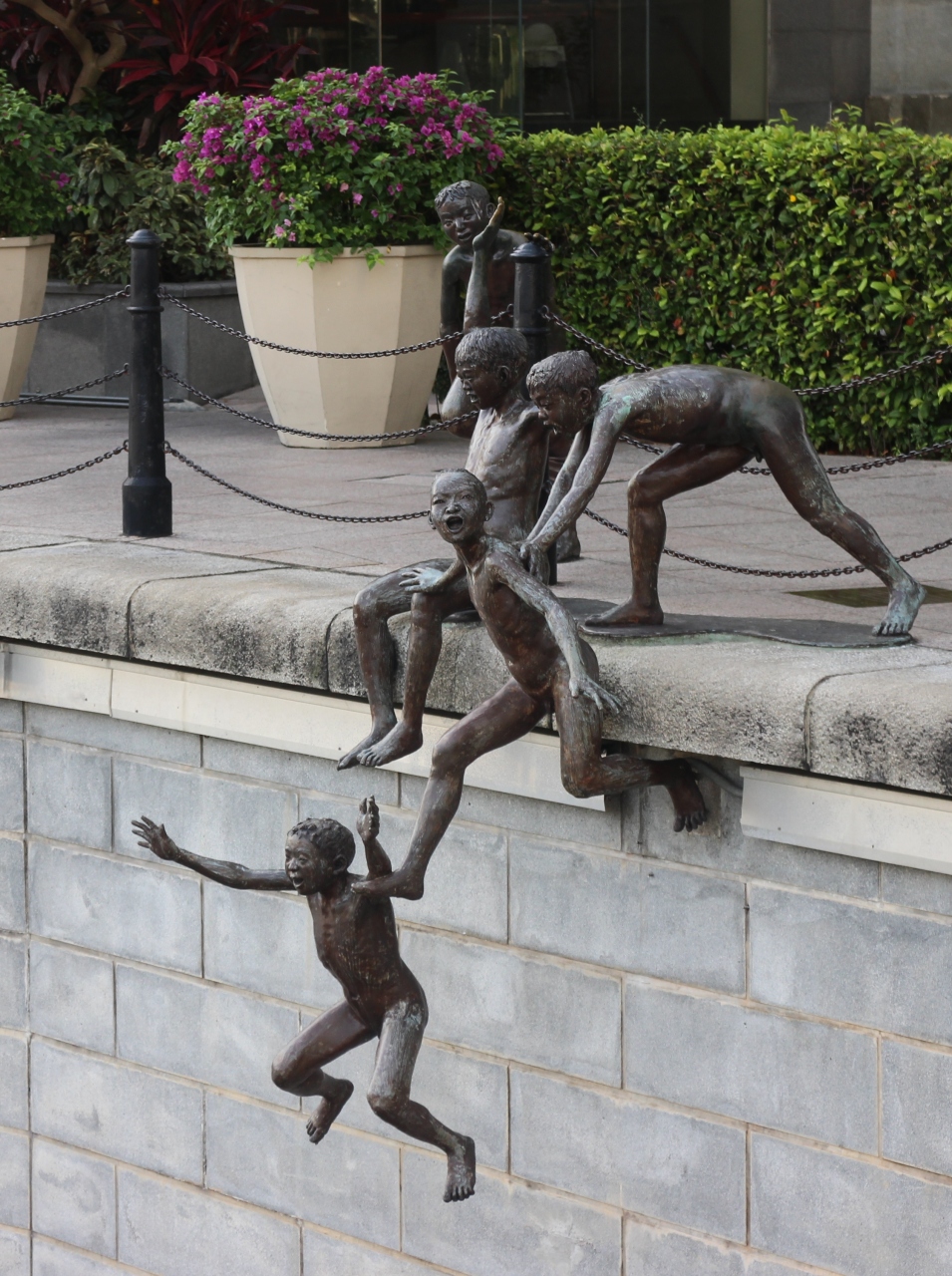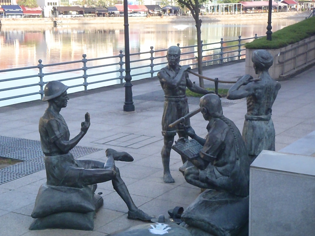 シンガポールリバーサイド地区、ザ・フラートンホテルとカベナ橋を渡って対岸、シンガポールリバー沿いに多くのシンガポール人をモチーフにした銅像があります。