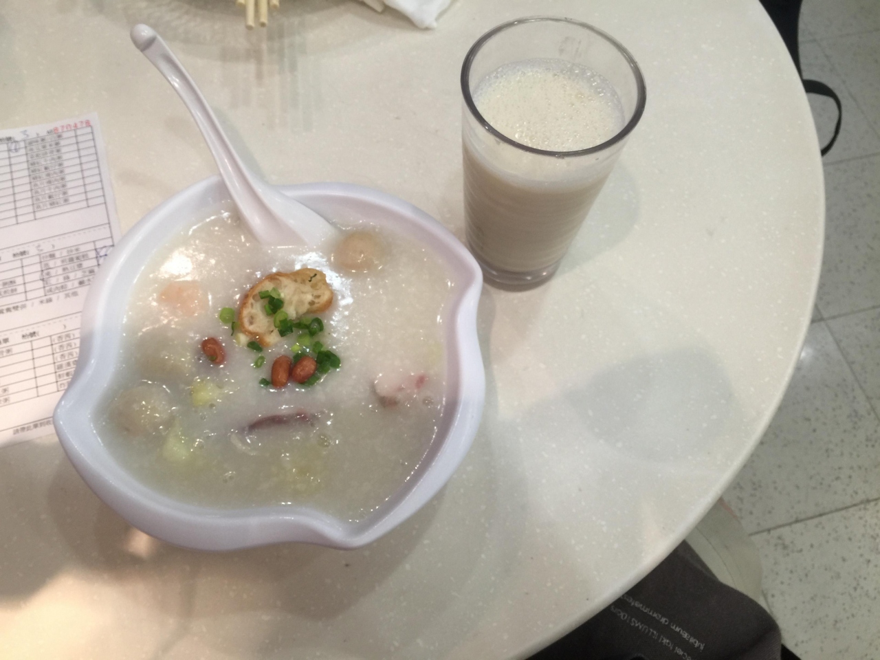 油麻地駅を出てすぐのところに海皇粥店があります。本当は朝食時に訪れたかったのですが、時間的に厳しいと思い、夕飯に訪れました。お粥のメニューはたくさんあり、そのほかサイドメニューもありました。お粥は夕飯としてなので、ちょっと贅沢して、たくさんの具入りのものを注文、そのほか大根餅のようなものを注文しました。ビールが飲みたかったのですが、アルコールは置いていないとのことで、冷たい豆乳を注文しました。量はかなりありましたが、お粥なのでするっと食べることができました。塩加減もちょうどよく、家でつくったらこんなにおいしくできないかもと思いました。食べ終わるときに、「揚げパン」を注文するの忘れた!と思い残念でした。揚げパンは塩味になっていて、お粥と一緒に食べるととても美味しいとのことです。