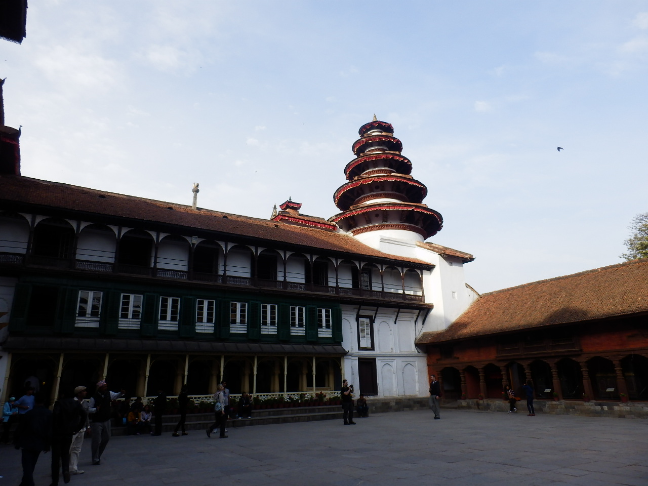 旧王宮ハヌマンドカの門をくぐると、すぐにナサルチョークという広場があり、その周りにいろんな建物がありますが、こちらはその中の1つ。門を入って正面、洋風な感じの建物の続きに、円盤のような屋根が5層乗せられた個性的なこちらの寺院がありました。ヒンドゥー教とのことで、建物の中には入れませんでしたが、内部にはハヌマン像があるそうです。