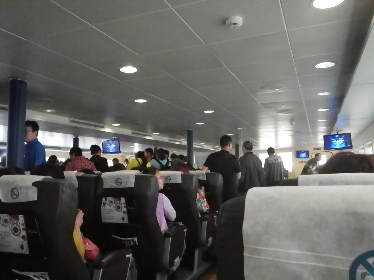 チェックインカウンターは乗船1時間前、8:00に開門。その際席を指定されるので、グループの人は一緒にチケットを出せば並んで座れます。