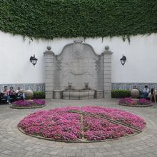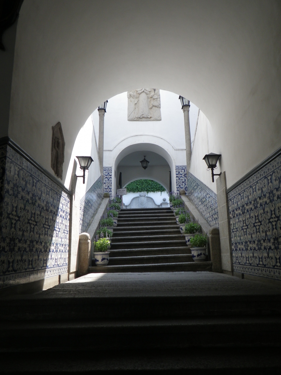 外観は、真っ白なので、タイルのイメージがないのですが、一歩入ると青と白の美しい装飾タイルが貼られていて、一枚の絵の様です。