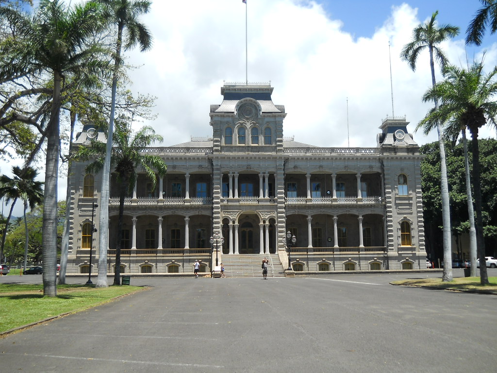 中には入れませんが、とても綺麗な建物です。リリウオカラニ女王が幽閉されていた部屋の場所などを教えてもらいました。