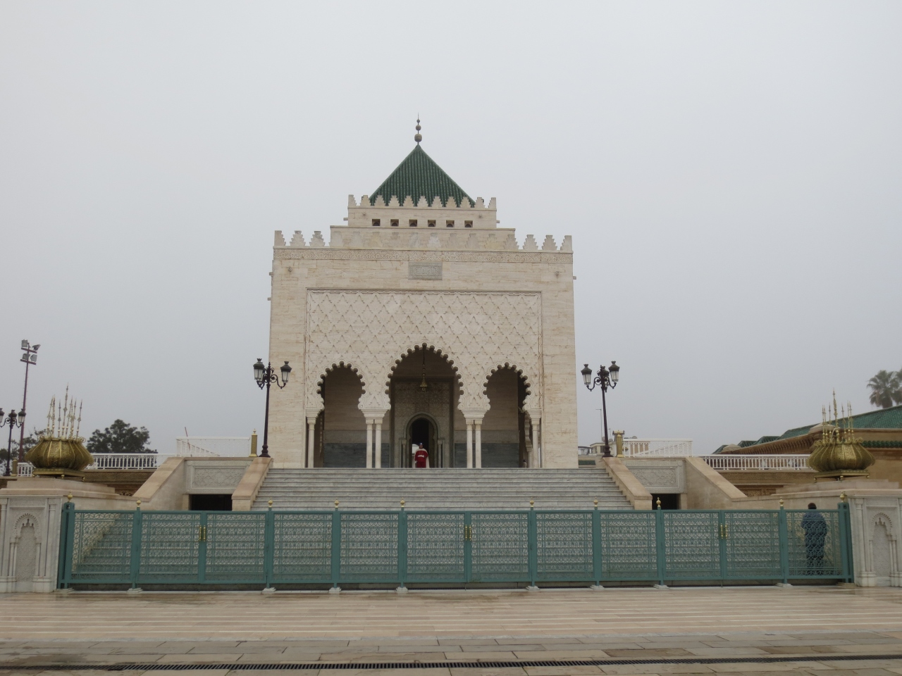 モロッコ独立の父であるムハンマド5世のお墓。霊廟の敷地の入り口には馬に乗った衛兵が、霊廟の4つの出入り口と霊廟内の四つの角には衛兵がついて霊廟を守っています。