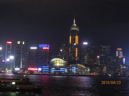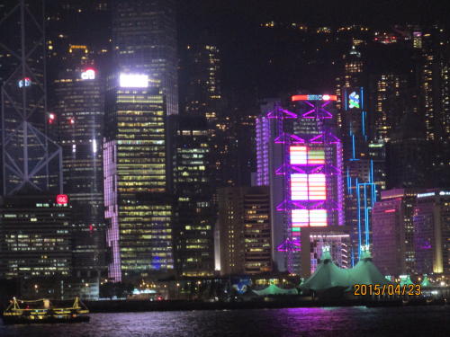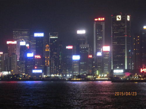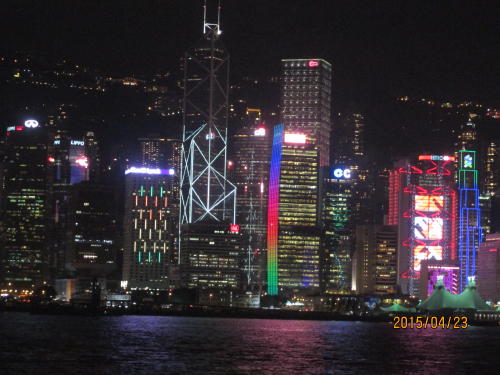 香港が世界に誇る「シンフォニー・オブ・ライツ(幻彩詠香江)」。香港政府観光局が2003年から毎晩8時から13分にわたり開催しているナイトイベントです。見物場所は九龍サイドのスターフェリー乗り場の脇に有る、香港文化中心と鐘楼前の海岸沿いの遊歩道からビクトリア海峡の対岸に建ち並ぶ高層ビルの壁面を眺めます。このイベントは香港が英国植民地から中国へ返還されたことを記念して始まりました。香港の100万ドルの夜景を一千万ドルにアップするイベントです。前回香港に来た時にはザペニンシラホテルの前は海でホテルの喫茶室はハーバービューで有名な観光場所でした。それが埋め立てられ香港文化中心なんて建物が建てられてしまった。残念な面もあるが広場が出来て観光客は無料で100万ドルの夜景が見れるスポットが出来たので喜ばしいことです。