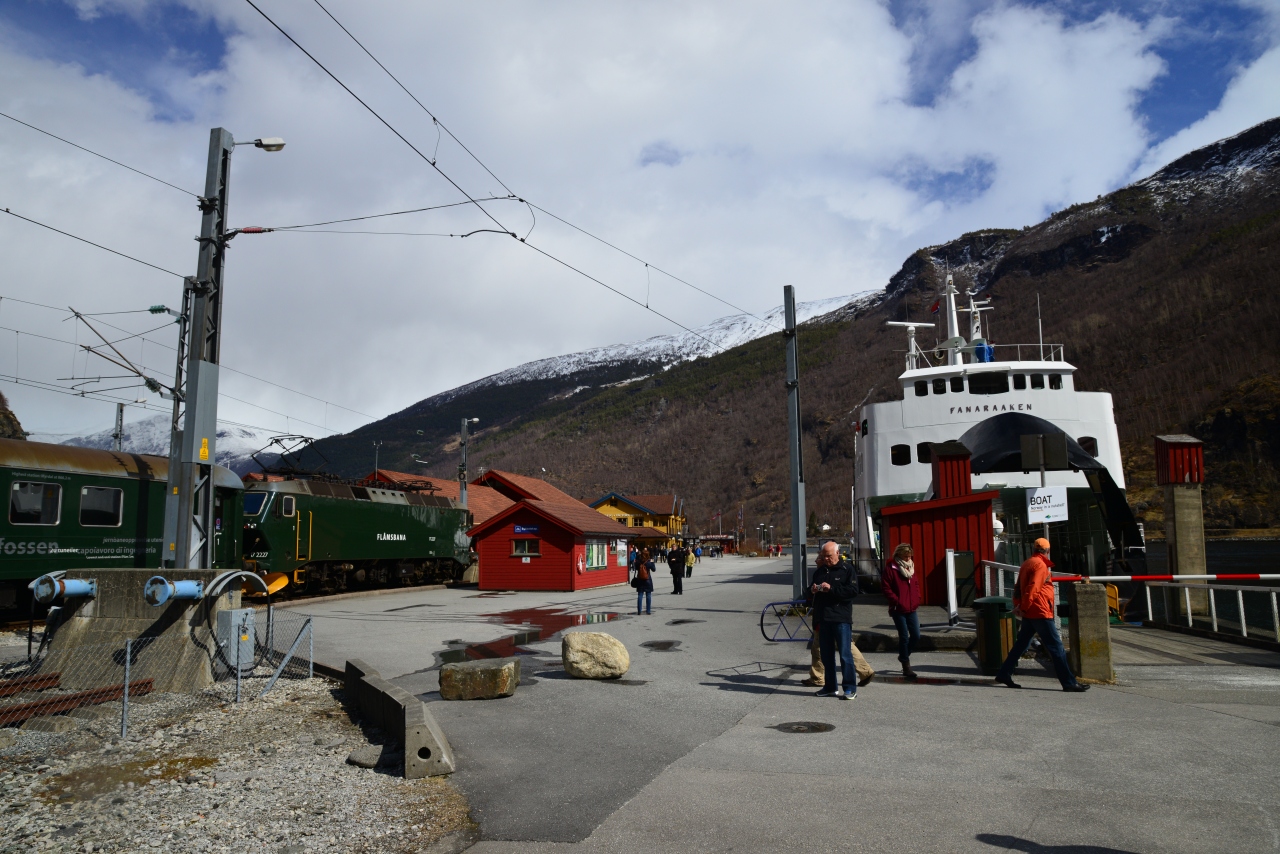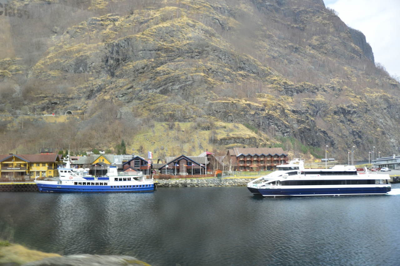 フィヨルド観光の拠点で、フロム鉄道で到着し、ここから船に乗る人もいれば、逆にここで船から鉄道に乗り換える人もいます。大小様々な船が停泊していて、「これは、個人所有の船か?」というようなものまでありました。