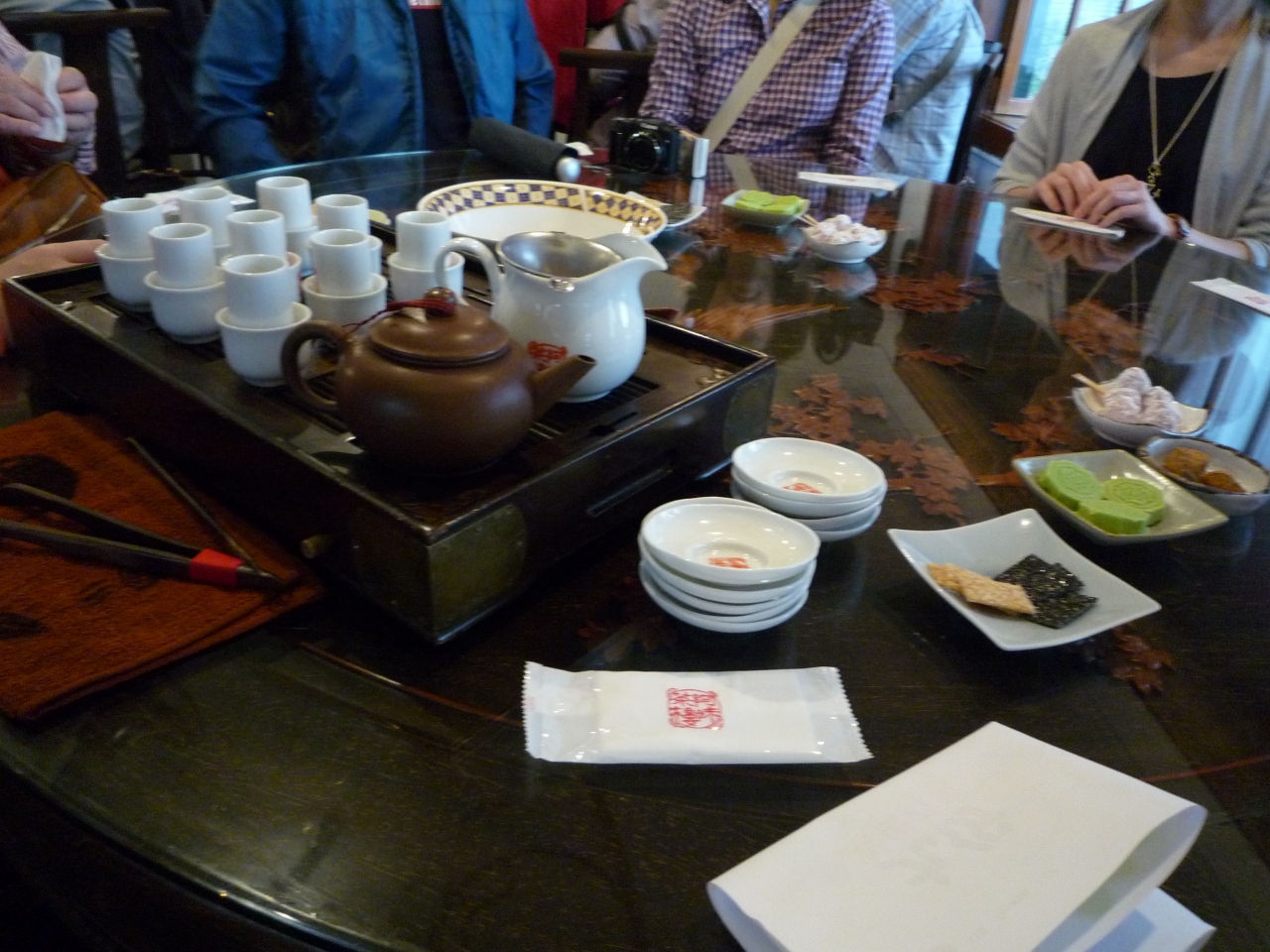 お茶とお菓子が出てきて、お茶の入れ方を最初の一杯だけお店の人が教えてくれ、あとは、自分たちで淹れました。