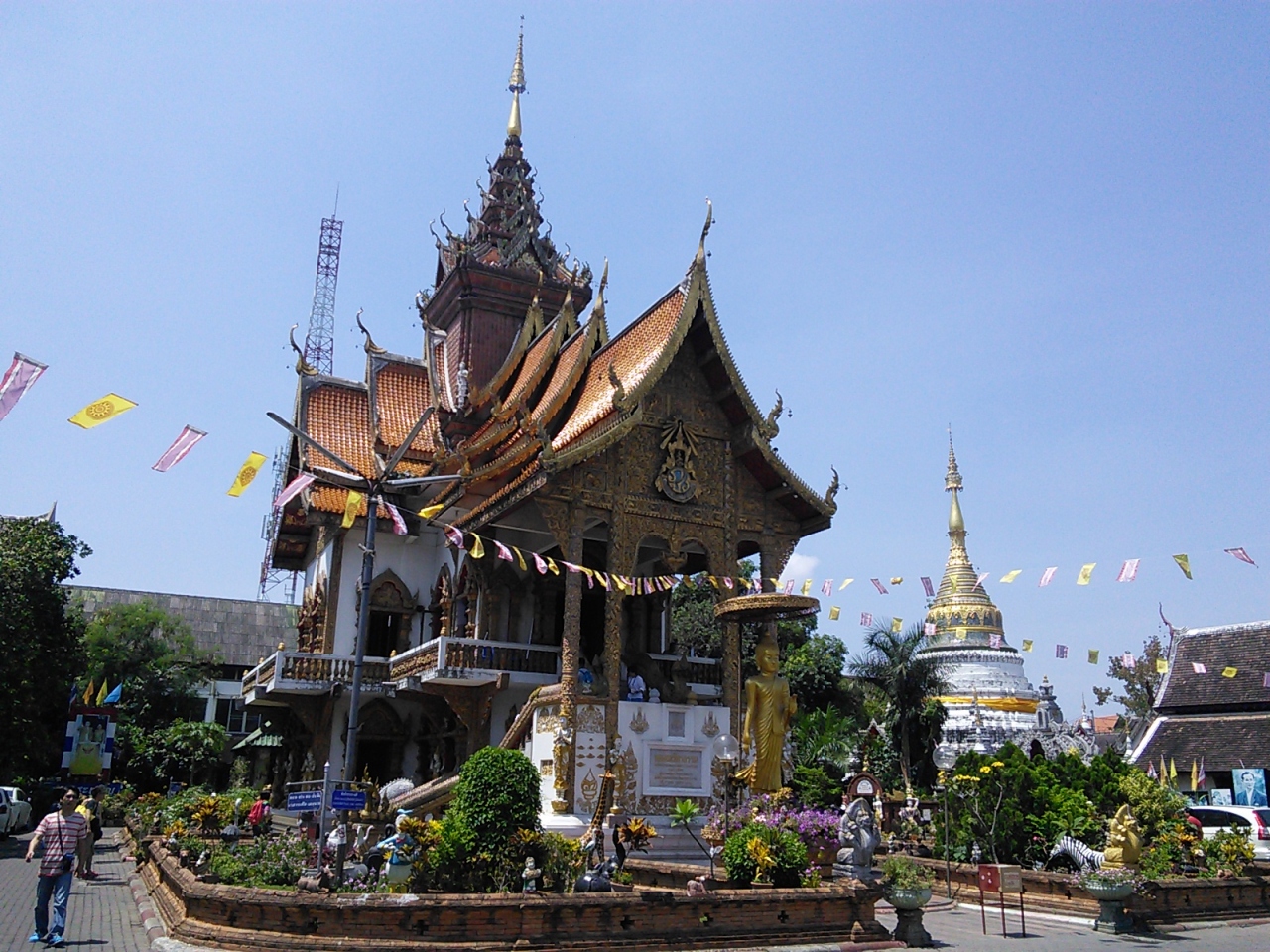 観光客で賑わっているお寺です。入口正面にある大きなお堂が必見ポイントです。お堂の中には三体の仏像があります。正面には黄金、向かって左側にはエメラルド、右側には白色。三方向から仏像に囲まれるなんともありがたいお寺です。