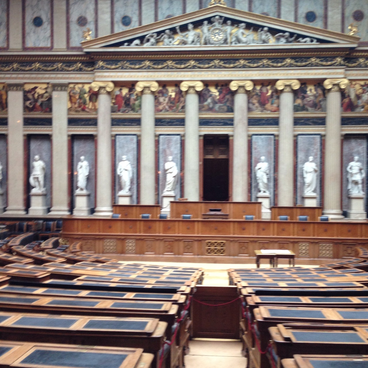 日本の国会議事堂よりも議場が小さく見えましたが、趣のあるステキな建物でした。