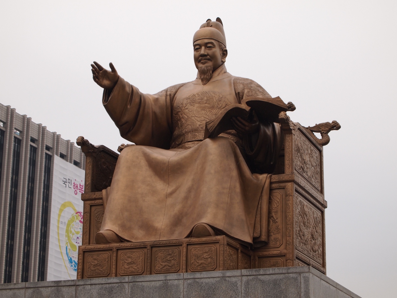 光化門広場に大きな世宗大王が座っています。