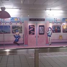 電車の運行状況は観光客が利用する時間帯は6分間隔で運行されているので待つことなく、どんどん電車が来るので時間の無駄がありません。構内や電車内の案内表示もすべて英語併記ですし、車内の案内放送も大きな駅は日本語放送もあって、まず迷うことはないです。電車内、駅構内ともに飲食、喫煙が禁止なので注意が必要です。それとイメージキャラクターに萌えキャラのアニメが使われていて、構内の至る所にポスターをはじめ等身大のボードなどが設置されているのは面白いところです。
