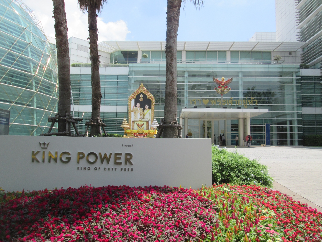キングパワー・コンプレックス内にあります。BTS戦勝記念塔駅から無料送迎トゥクトゥクがあるそうですが、徒歩圏内で5分程度で到着しました。売り場面積が1万平方メートルある巨大な免税店で、品数は豊富でした。