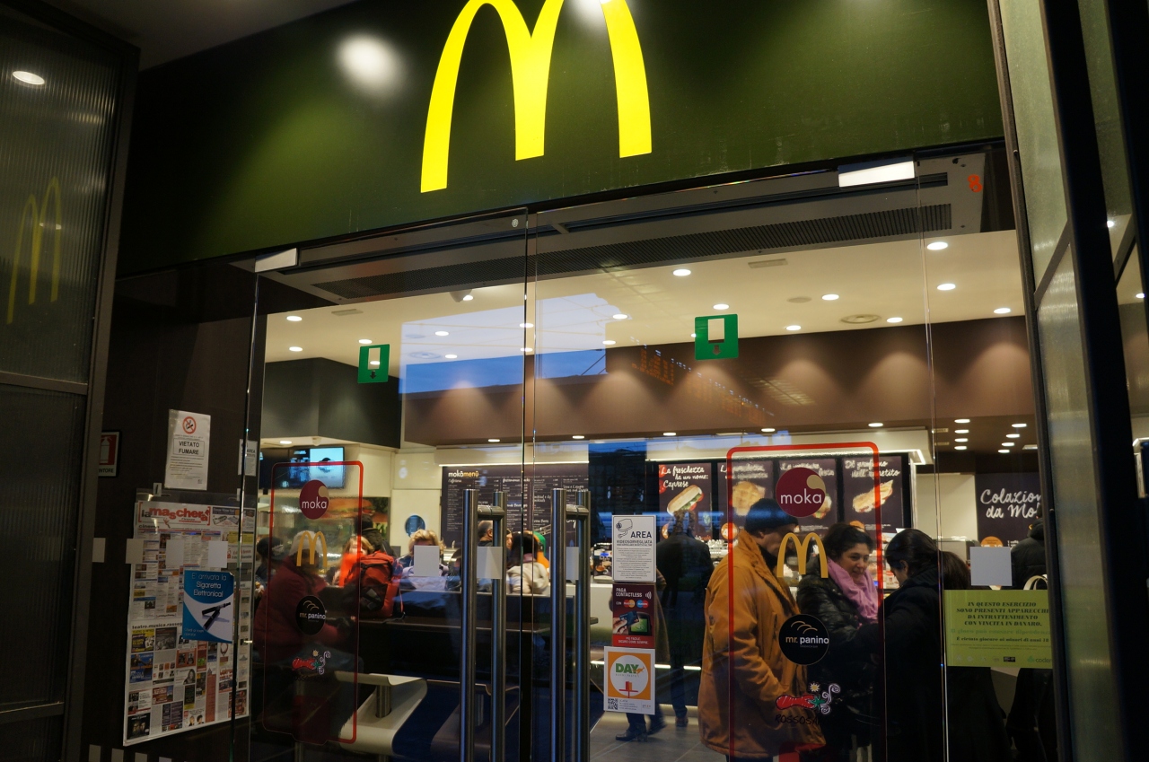 駅の構内にマクドナルドやバール、売店、タバッキなどあり、
