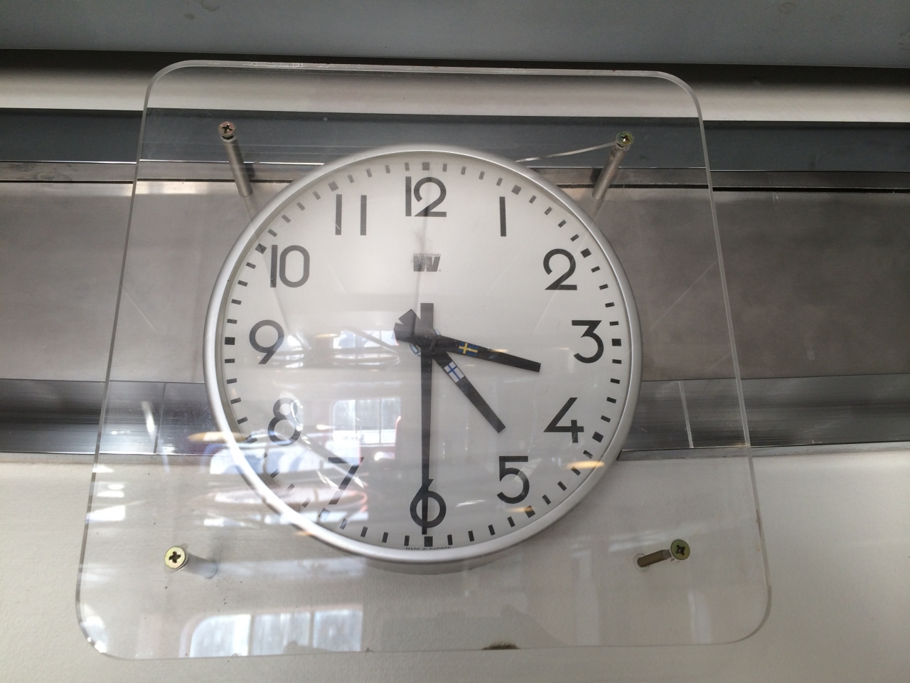 ヘルシンキとストックホルム、時差が一時間あるので、それを示す時計が気に入ったので写真を撮りました。