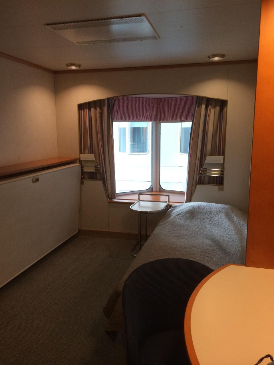 思っていたよりずっと大きなフェリーで、言うなれば、地上12階地下5階の大きなビルが浮かんでいるといった感じ。大きいので、全然揺れず、船酔いは全くありませんでした!