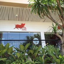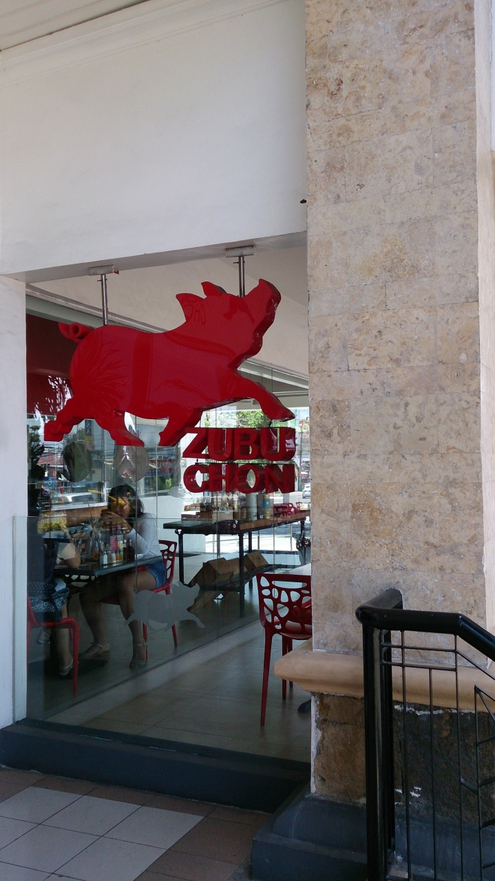 赤が基調で、豚さんのシルエットの看板がとてもかわいい!