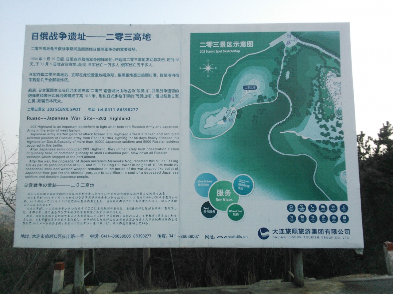 日露戦争の激戦の地であることを中国語、日本語、英語で説明する看板がありました。日本人、特に、「坂の上の雲」を読んだことのある人なら、最後の一文が納得のいかないないのではかいのでしょうか。それがなければ、それなりに我々の知識に基づいた客観的な内容もあるんですが・・・。風景、展示物をダメ押しするがっかり感でした。