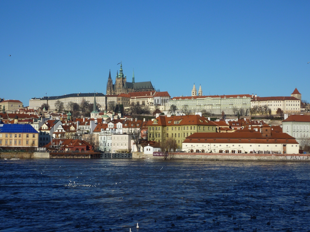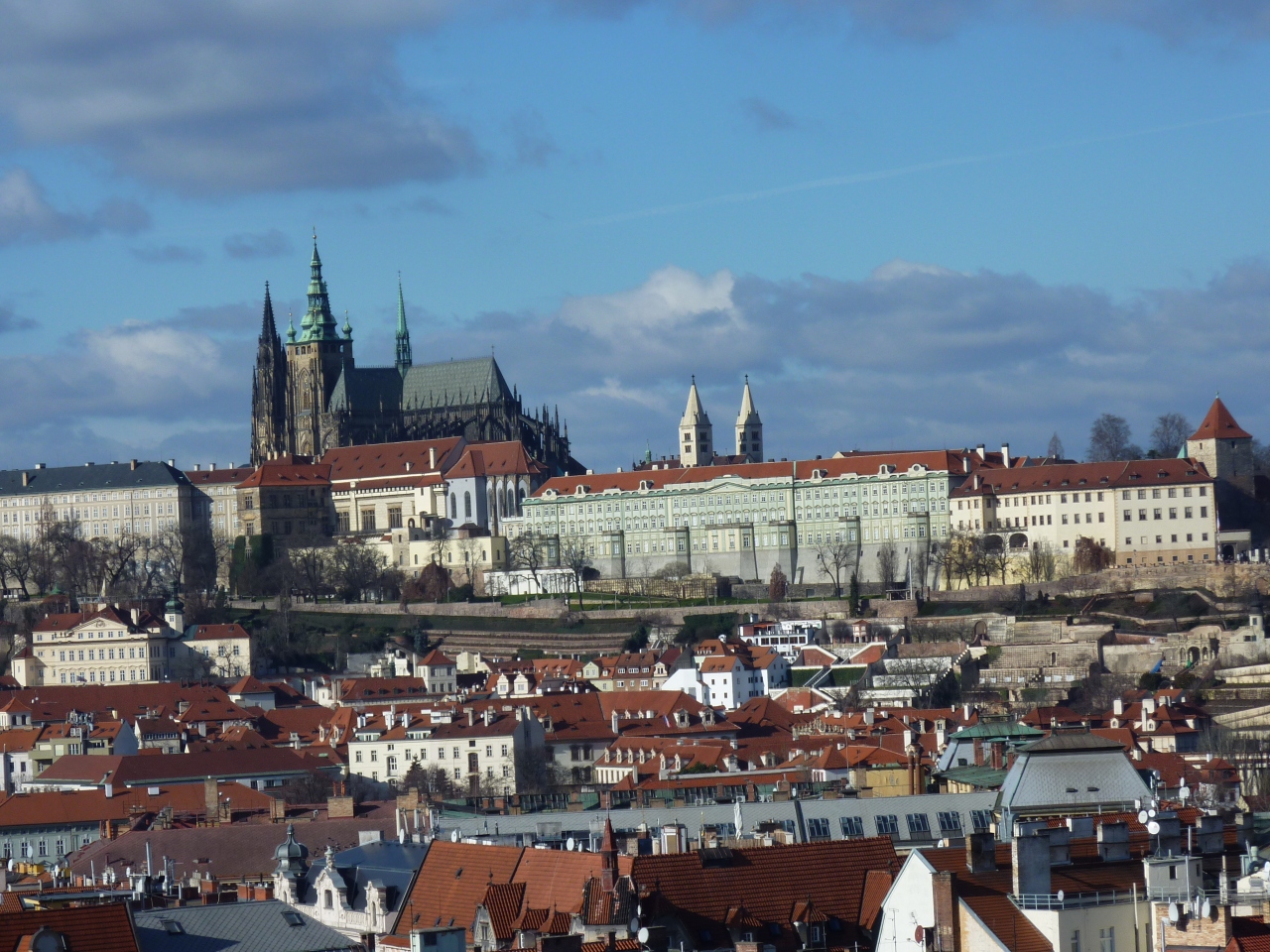 プラハの街を見下ろす高台にあり、王宮、大聖堂を含む一つの街を城壁が取り囲んでいます