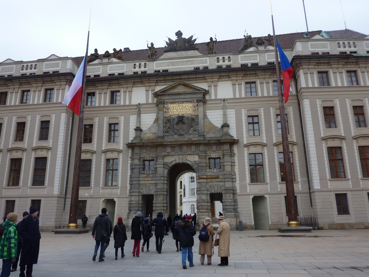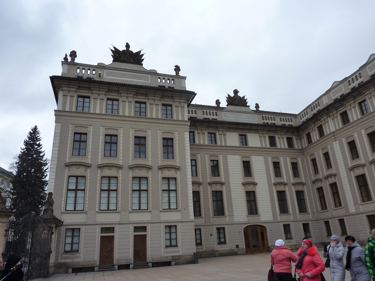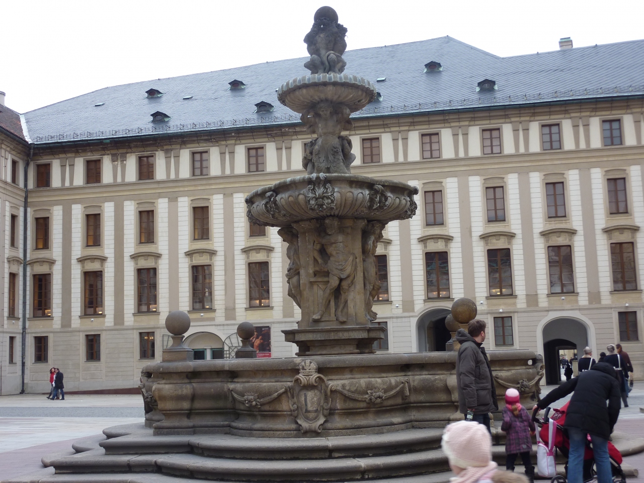 旧市街から石畳の坂道を登って所に広場があり、ここから衛兵に守られた西の門を通って王宮の建物に囲まれた中庭に入ります。マティアス門をくぐるとコールの噴水があり、更に進むと聖ヴィート大聖堂に到達します。大聖堂の奥の広場には聖イジー教会がありその後ろは黄金の小道に続いています。