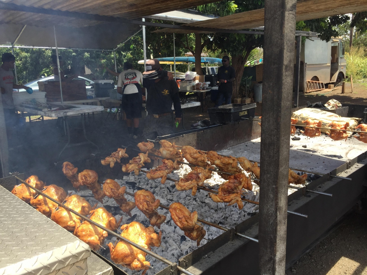 土日のみ、スーパーの駐車場で営業する鶏肉のバーベキュー。