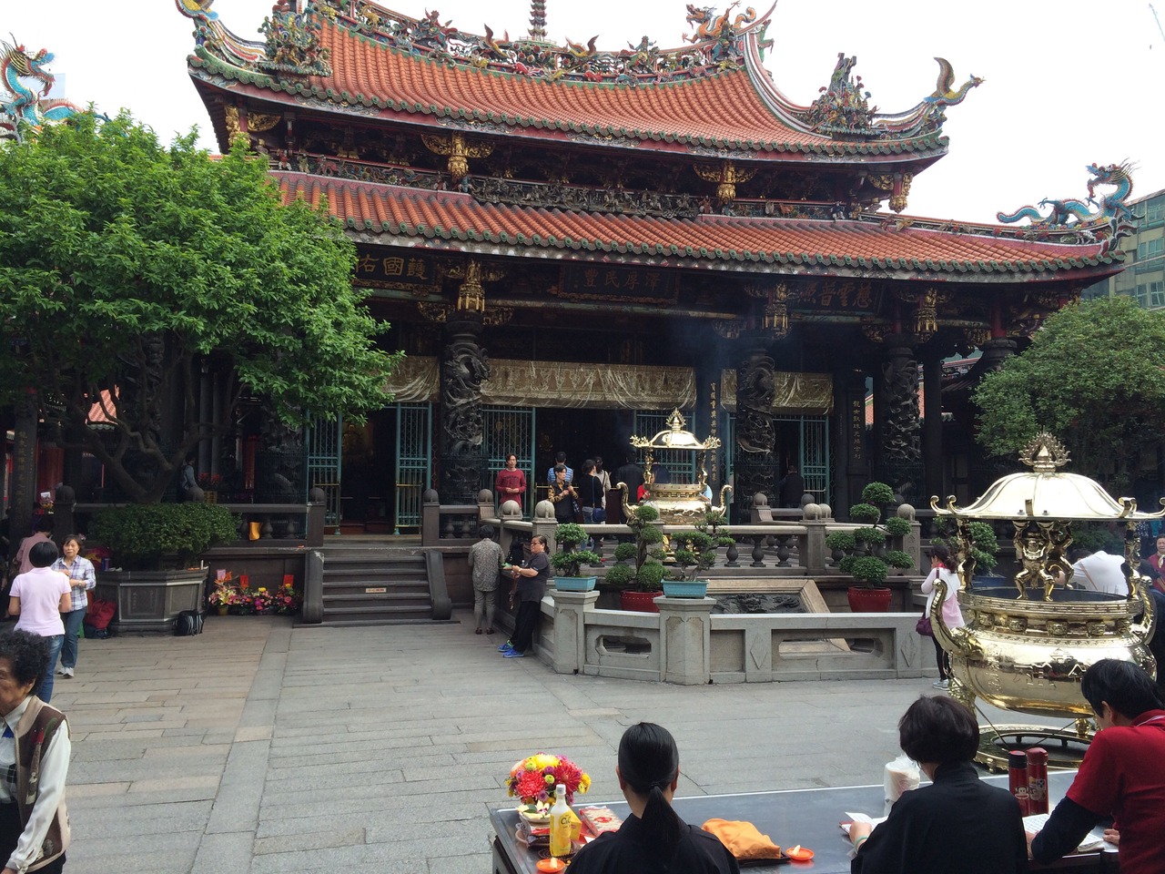 MRT龍山寺駅からすぐのところにある、台北で最も有名なお寺のひとつ。朝早くから夜遅くまでやっており、入り口でロウソクと線香を購入する。しなくても良いが200円くらいなので、どうせならお参りしましょう。