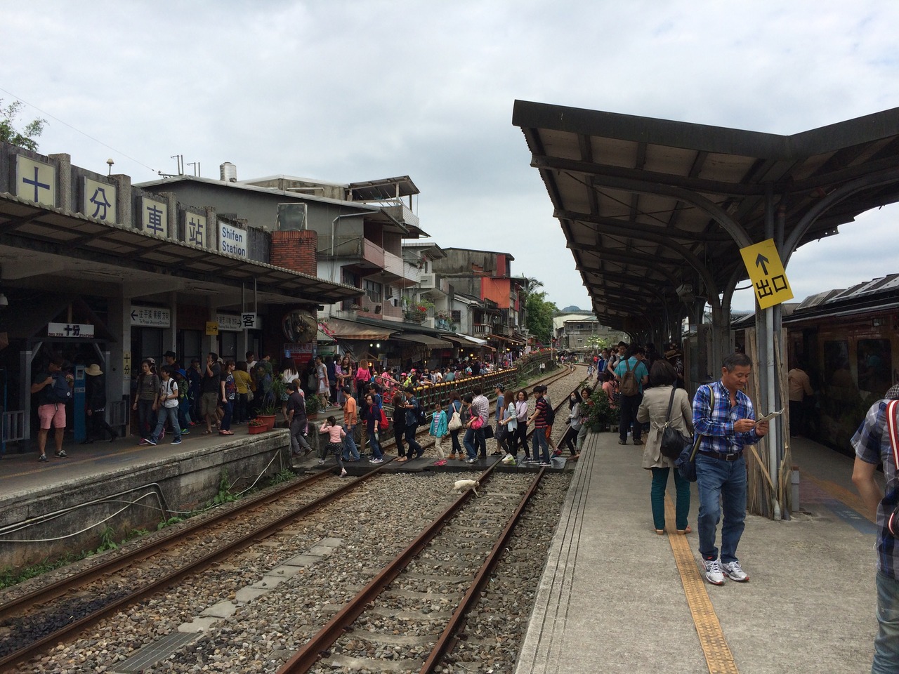 台北から電車で50分の瑞芳駅から出ている、平渓線のちょうど中央らへんに位置する駅。ものすごい量の観光客が乗降する。ここにもはや規則などないようだ。しかし、近くにめぼしい観光地もなく、吊り橋があるくらい。有名な滝はここから歩いて30分ほどかかるので注意。