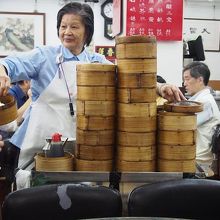 メニューは一切なく、おばさんが運んでくるワゴンに積まれているセイロの中を見て、気にいったものをもらうと、伝票にハンコを押してくれます。