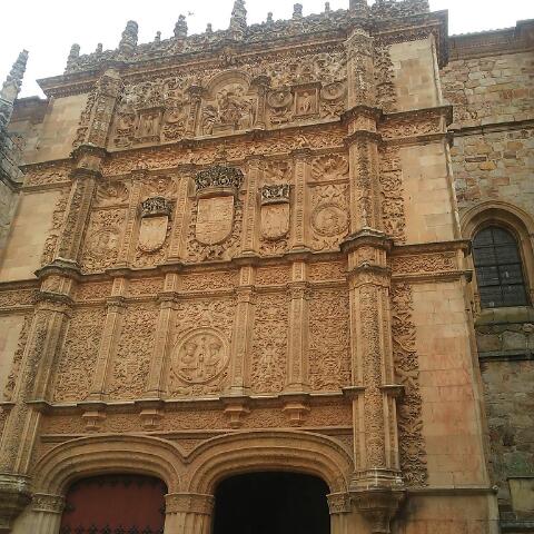 ファサードにはたくさんの彫刻で装飾がなされ、中央部分にはスペインカトリック両王の