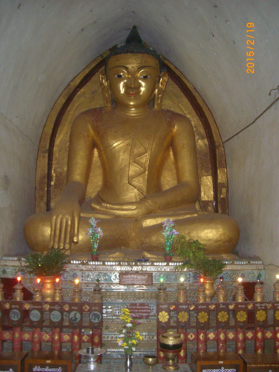 ヤンゴンのシュエダゴン・パヤー境内にもマハーボディ寺院があるがインドのブッダガヤにある寺院を模した造りでオールドバガンのタラバー門をくぐり黄金王宮と王宮考古博物館の先を船着場方面に右折した左手に建つ。立方体の本堂の上に何層もの装飾した高い塔が建っており中には金ピカの座像が1体鎮座している。