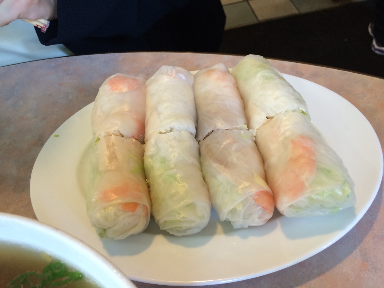 牛肉のフォー、鶏肉のお粥、生春巻きなどをいただきました。