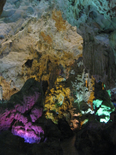 ハノイから現地旅行社の主催するハロン湾クルーズツアーに参加して立ち寄りました。急な階段を少し登りますが、中はライトアップされているので足元は心配なし。穴から自然の光がさすところがきれい。ライトはカラフル。